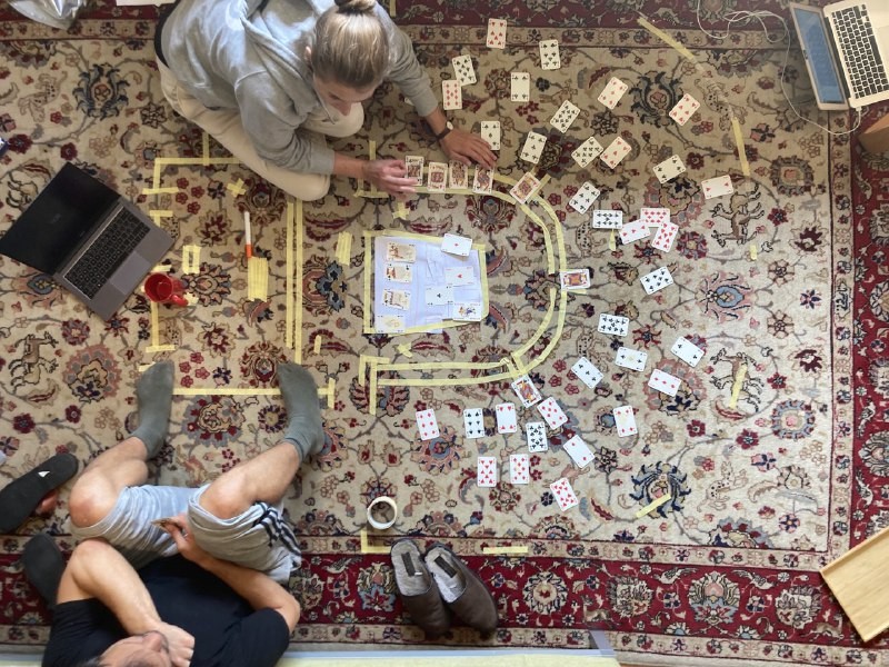 Deshalb spielen wir also mit Spielkarten auf abgeklebten Grundrissen und steigern dabei vor allem eins: unsere Vorfreude.