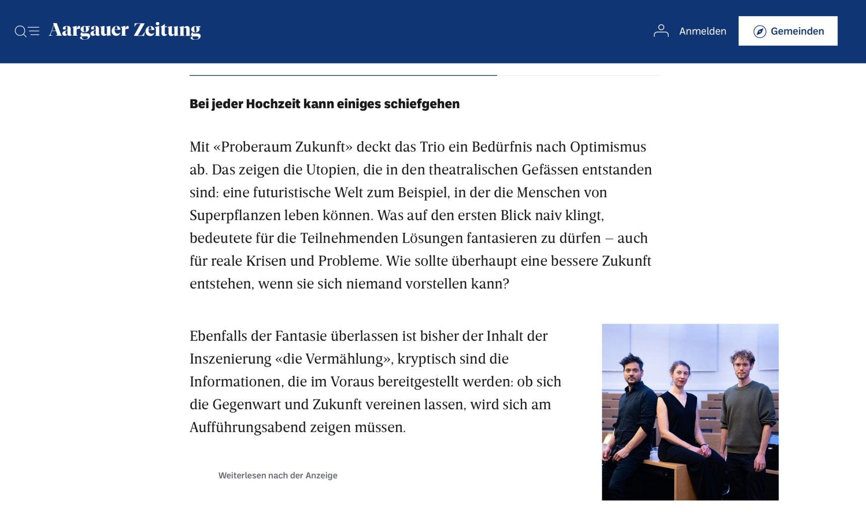 Die Premiere ist zwar den coronabedingten Theaterschliessungen zum Opfer gefallen, aber das Aargauer Kulturmagazin «AAKU» war so freundlich und hat uns kurzerhand zur Titelstory der April-Ausgabe gemacht. Das ehrt und freut uns sehr, herzlichen Dank dafür! Den Artikel gibts 202004_aaku_aaraguer_kulturmagazin_nr34_april20_web.pdf als PDF.