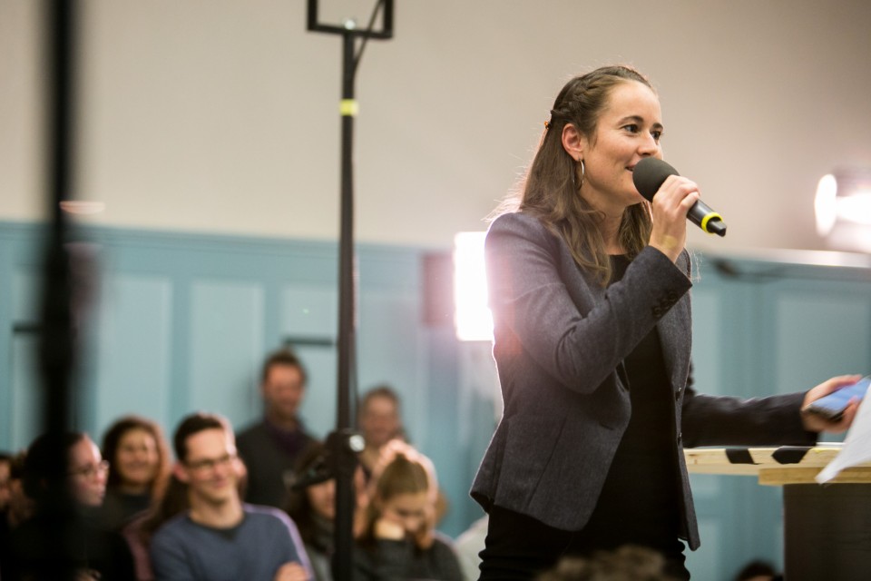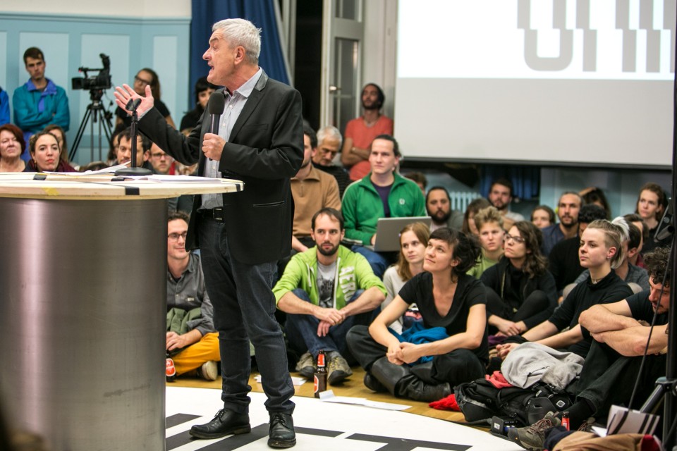 Schweizer Revolution beschränkte sich nicht auf das Pre-enactment im Volkshaus. Es gab ab Ende Oktober eine Vorkampagne in den Sozialen Medien, und am Folgetag des Pre-enactments, dem 8. November, blickten wir mit dem Vater der Gemeinwohlökonomie, Christian Felber und der Nationalrätin und Unternehmerin Jacqueline Badran im voll besetzten Cabaret Voltaire zurück auf das Erlebte – die vorweggenommene real-utopische Gegenwart – und trugen die Debatte rund um die Frage «Was tun?» zurück ins Diesseits.